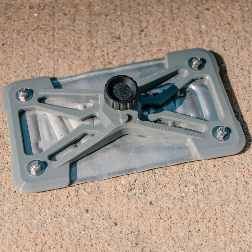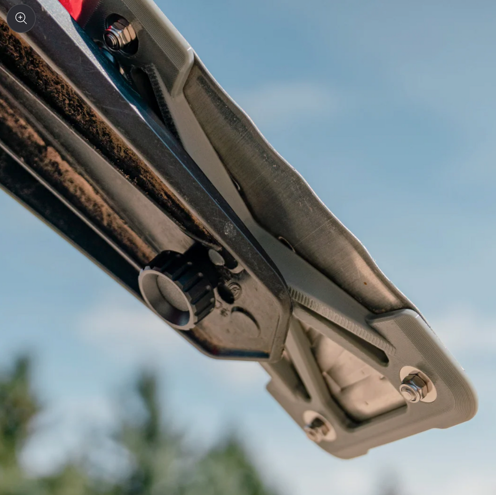 Thumbscrew and integrated thread lock to prevents loosening over trail and highway frequencies.